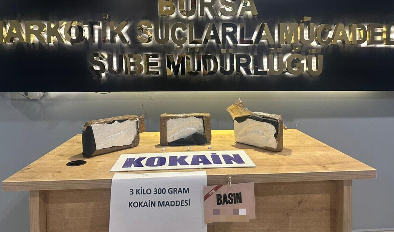 Bursa'da uyuşturucu ticareti yaptığı belirlenen H.İ.M., cipinde gözaltına alındı. Ön camında sahte 'basın trafik kartı' bulunan cipte, 3 kilo 300 gram kokain ele geçirildi.