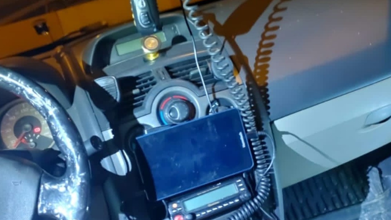 Araçta polis amblemi bulunan eşyalar görülmesi üzerine inceleme yapan ekipler, sahte olduğu anlaşılan polis basın yazılı kartlar ele geçirirken arabada telsiz düzeneği kurulduğunu tespit etti.