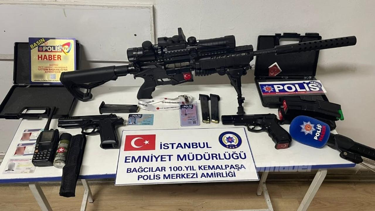 Bağcılar'da bir araçta, sahte polis amblemli eşyalar ile telsiz düzeneği ve silah ele geçirildi.