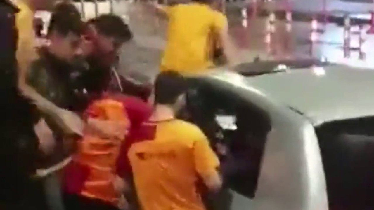 Ankaragüçlü taraftarın otomobilini durdurması ile bazılarının elinde sopalar olan Galatasaraylı taraftarlar otomobile saldırdı.