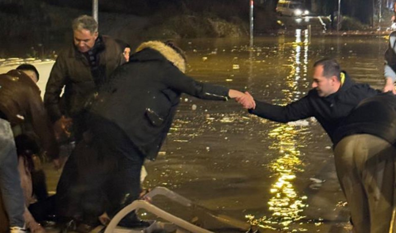 Araçtaki yolcular zor anlar yaşadı. Onların yardımına belediye ve kurtarma ekipleri yetişti. Minibüste mahsur kalan yolcular tek tek kurtarıldı.