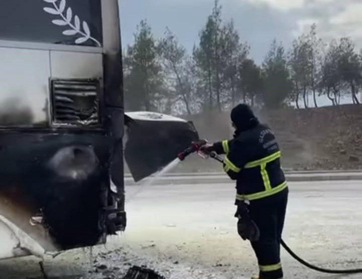 Durumu fark eden sürücü, otobüsü yol kenarına çekip durdu. Otobüsteki yolcular tahliye edilirken, ihbarla olay yerine itfaiye ve jandarma ekipleri sevk edildi. İtfaiye ekiplerinin müdahalesiyle yangın, yolcu koltuklarına sıçramadan söndürüldü. Yangınla ilgili inceleme başlatıldı.