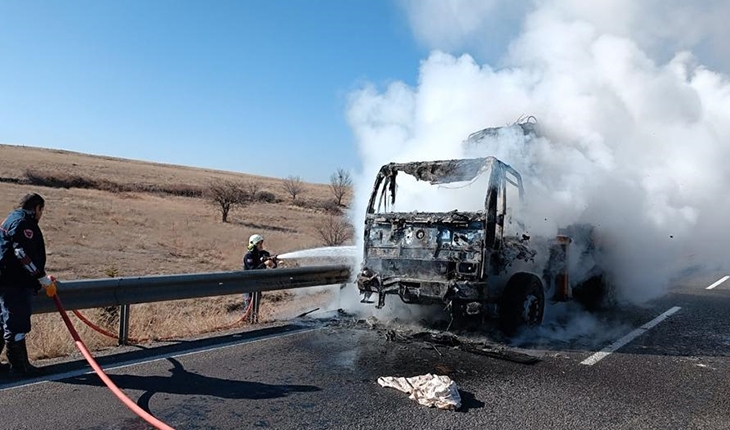 Nevşehir'de, seyir halindeki vinçte çıkan yangın itfaiye ekiplerince söndürüldü.