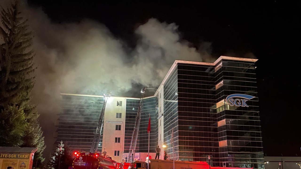 Sivas'ta, Sosyal Güvenlik Kurumu (SGK) İl Müdürlüğü binasının çatısında yangın çıktı. İtfaiye ekiplerinin alevlere müdahalesi devam ediyor.