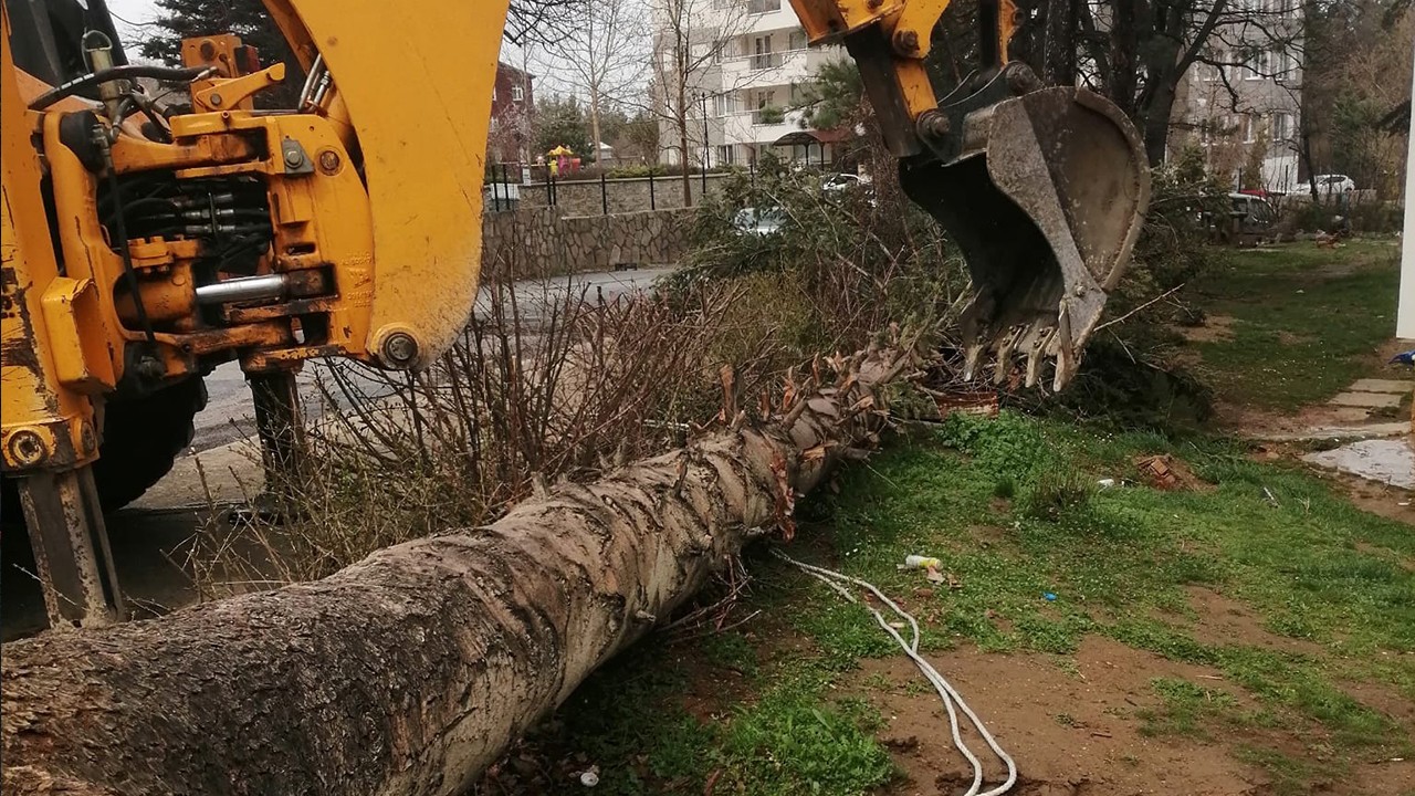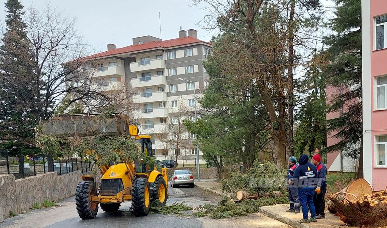 Apartman sakinleri belediye ekiplerine durumu bildirdi.Seydişehir Belediyesi ekipleri ağacı yerinden kaldırdı.