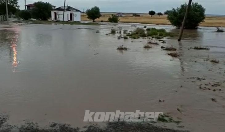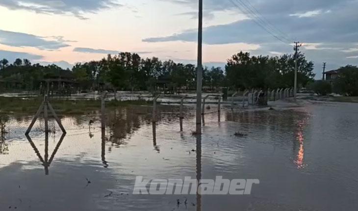 Konya'nın Kulu ilçesinde şiddetli yağış sonrası çocuk oyun parkı ve çevresi göle döndü, dere yatağı taştı.