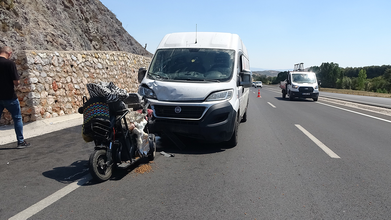 Kaza, Tavşanlı-Harmancık kara yolu 5’inci kilometresindeki Sorkun mevkisinde meydana geldi. M.P. (46) kullandığı 35 AEF 380 plakalı minibüsle, önünde giden Aysun Köse'nin kullandığı 43 AFT 698 plakalı üç tekerlekli elektrikli bisiklete çarptı.
