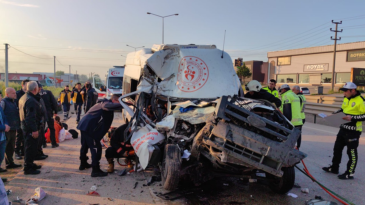 Balıkesir'de düzenlenen Spor Toto Minikler Judo Yarışması’na giden Aksaray Gençlik ve Spor İl Müdürlüğü sporcularını taşıyan 68 EZ 644 plakalı servis minibüsü, Bursa'nın İnegöl ilçesinde 16 KJA 99 plakalı hafriyat kamyonuna çarptı.
