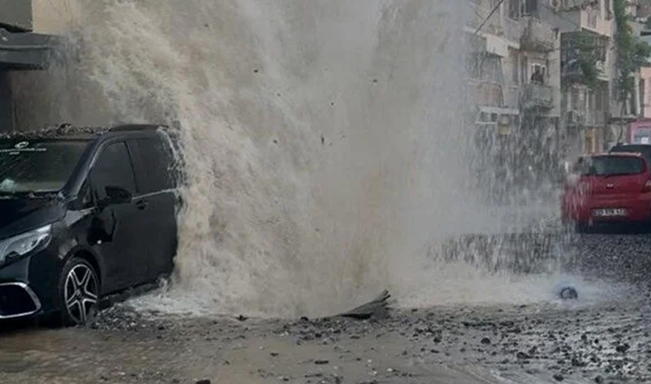 İzmir'in Konak ilçesinde sokakta ana su borusu patladı. Tazyikli olarak metrelerce yükseğe çıkan su sebebiyle çok sayıda araç, ev ve iş yerinde hasar oluştu. Ekiplerin çalışmalarına başlamasının ardından bölgede su kesintileri de yaşanıyor.