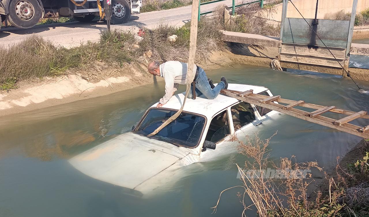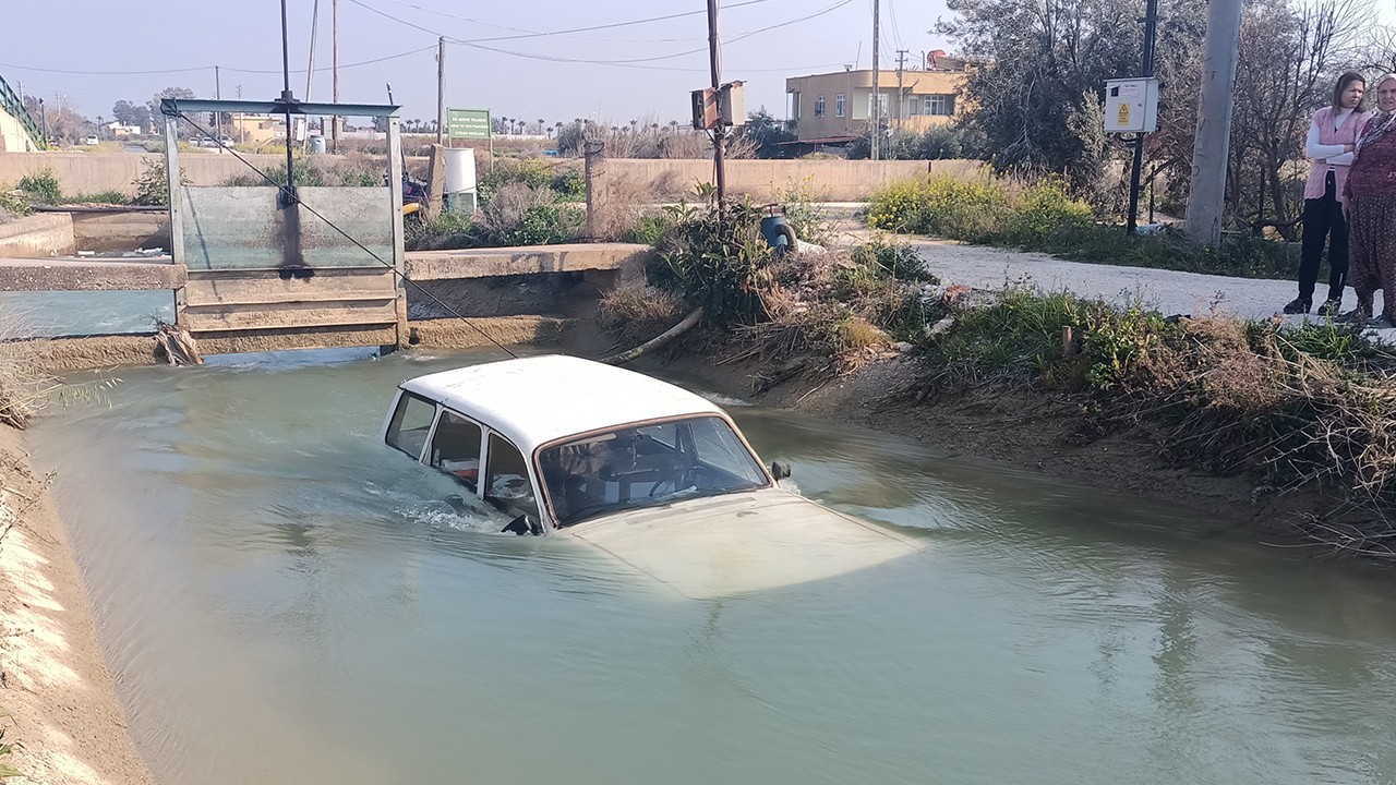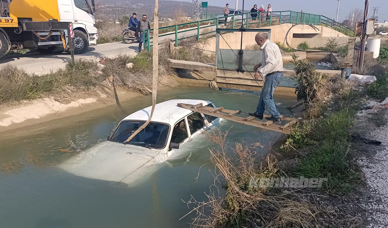 Eşi ve 3 çocuğuyla yolculuk eden Kasım Yılmaz idaresindeki 33 KCT 15 plakalı otomobil, Sarıcalar Mahallesi'nde sulama kanalına devrildi.