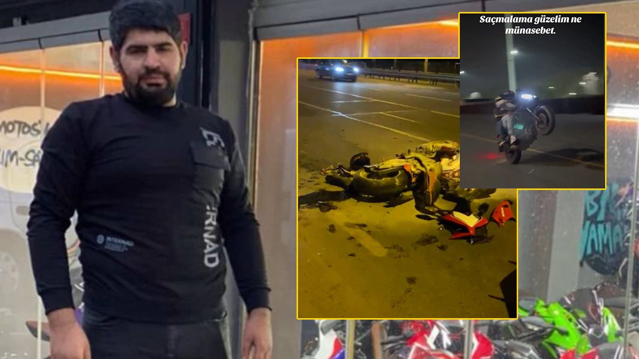 Kazada hayatını kaybeden motosiklet sürücüsü Sinan Delek'in motosikletiyle tek tekerlek gittiği ve hızının saatte 240 kilometreye çıktığı anları sosyal medya hesabından paylaştığı ortaya çıktı. Diğer yandan Delek'in, sosyal medya profilinde 'Cenaze Hizmetleri ve Mezarlık' yazısı yazdığı görüldü.