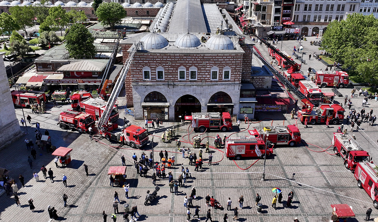 Fatih'teki tarihi Mısır Çarşısı girişindeki restoranın bacasında çıkan yangın, itfaiye ekiplerinin müdahalesiyle söndürüldü.
