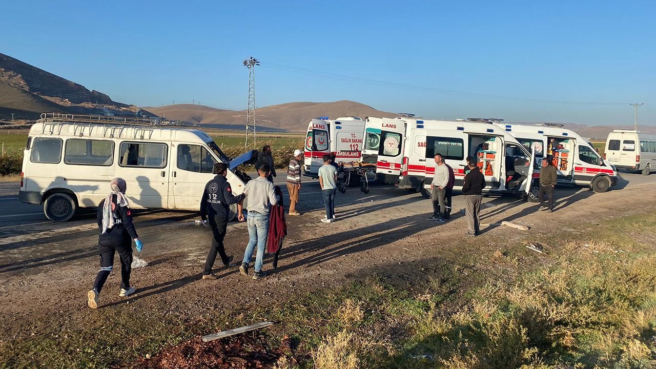 Kayseri'de tarım işçilerini taşıyan minibüs ile yakıt tankerinin çarpışması sonucu 15 kişi yaralandı.