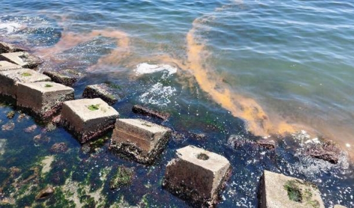 Marmara Denizi'nin Tekirdağ sahilinde plankton çoğalmasıyla deniz suyu renginde turuncu renk oluştu.