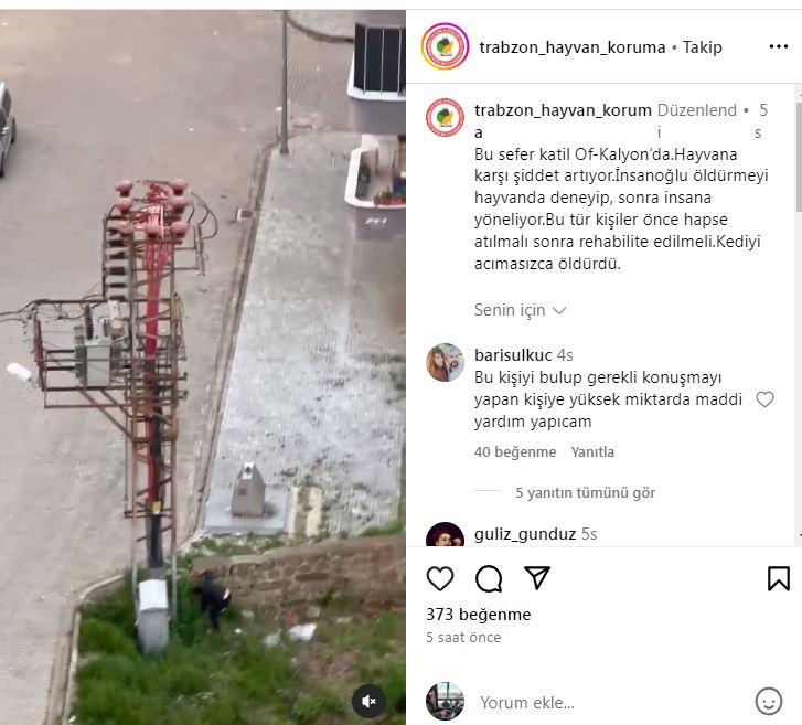 TRAHAYKO Başkanı Lütfiye Tüzün Kurban, yaşananlara tepki göstererek, "Bize görüntü geldiğinde ilk önce tabii ki çok kötü bir şekilde içimiz acıyarak bu görüntüyü izledik. Defalarca izledim görüntüyü. Bu kişinin bilerek, tasarlayarak gidip, kediyi öldürdüğünü, daha sonra oradan ayrıldığını ve tekrar olay yerine gelerek kedinin ölüp ölmediğini kontrol ettiğini ve tekrar o kediyi fırlattığını gördük. Duyduğumuza göre bu kişi 'Benim psikolojim bozuk, o anda moralim bozuk olduğu için ben bu olayı işledim' demiş. Ona inanmıyorum. Çünkü defalarca aynı videoyu izledim. Bilerek gelinmiş, bilinçli bir şekilde yapılmış. Diyelim ki psikolojisi bozuk. Bu bir çocuğu öldürseydi o anda. Aynı şekilde veya bir kadına veya bir yaşlıya aynı işlemi yapsaydı, 'Psikolojim bozuktu' deyip kurtulabilecek miydi? İnsanlar, öldürmeyi hayvanda öğreniyor. Daha sonra insana geçiyor. Sevme de öyledir; hayvanı severseniz daha sonra diğer canlıları da daha farklı şekilde insanları da seversiniz" dedi.