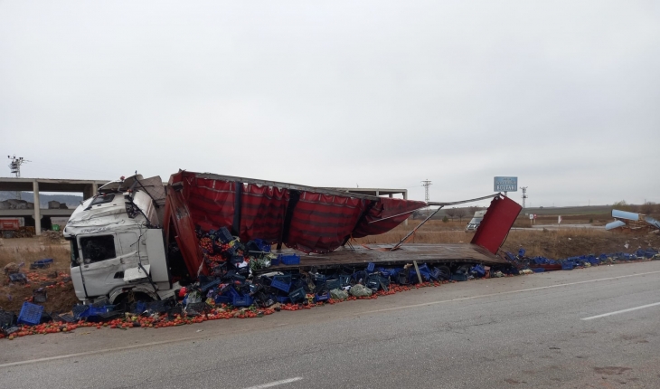 Afyonkarahisar-Antalya karayolunda meyve yüklü bir tırın devrilmesi sonucu 1 kişi yaralanırken, bir tır dolusu meyve ise yola saçıldı. Tır şoförü Muhammet Şahin Altınyazar, tedavi altına alındı.