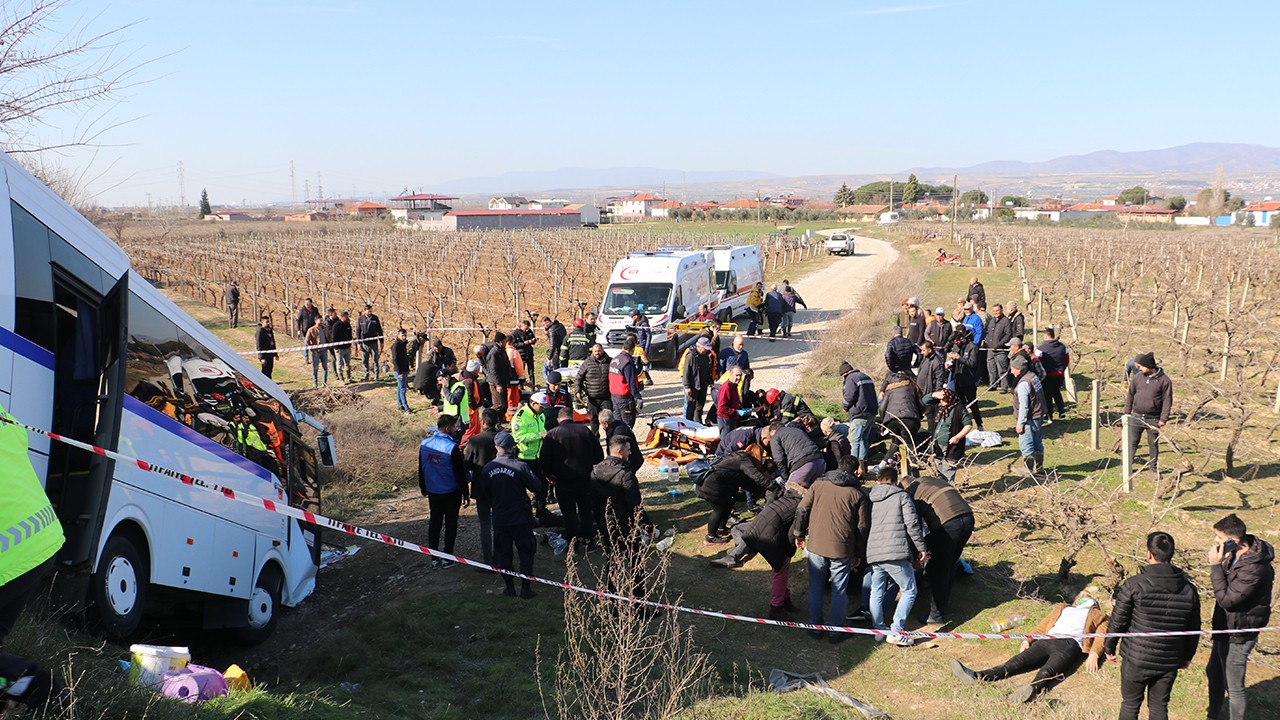 Manisa'nın Alaşehir ilçesinde tır ile işçileri taşıyan servis minibüsünün çarpışması sonucu ilk belirlemelere göre 23 kişi yaralandı.