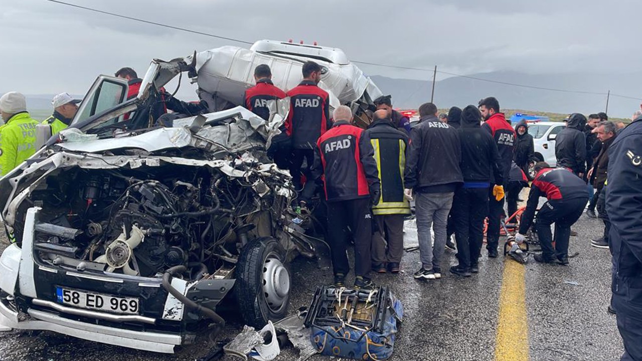 Sivas'ta tır ile yolcu minibüsünün çarpışması sonucu ilk belirlemelere göre 4 kişi hayatını kaybetti.