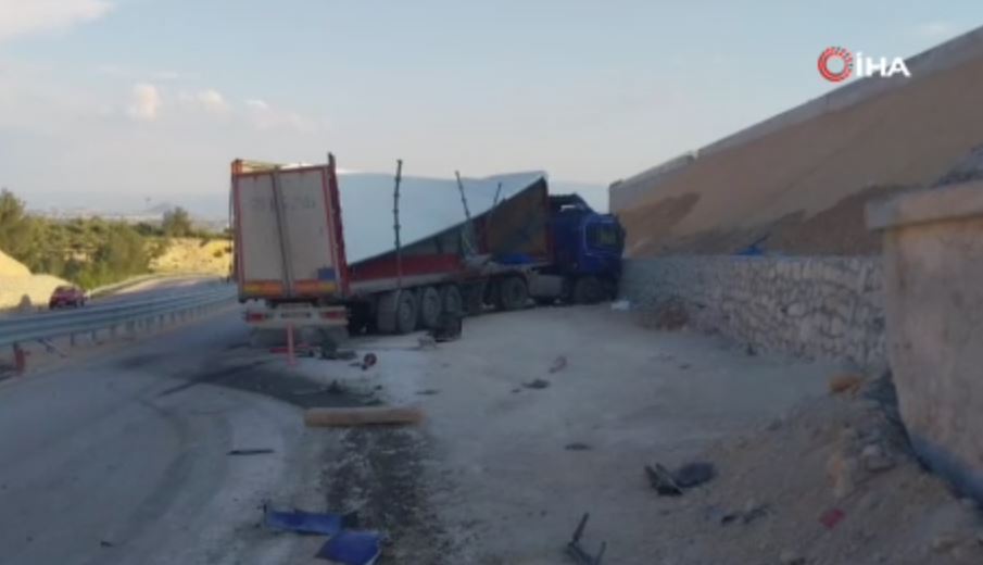Mersin'in Mut ilçesinde yapımı süren kaçış rampasına çarpan tırın kasasından savrulan mermerler, park halindeki işçi minibüsünü parçaladı. Kazada 1 işçi hayatını kaybetti, 2'si işçi 3 kişi de yaralandı.