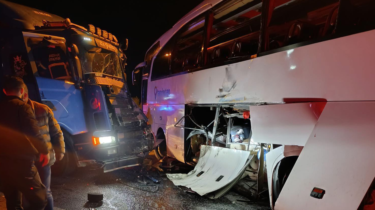 Bilecik'in Bozüyük ilçesinde tur otobüsü ile tırın çarpışması sonucu 20 kişi yaralandı.