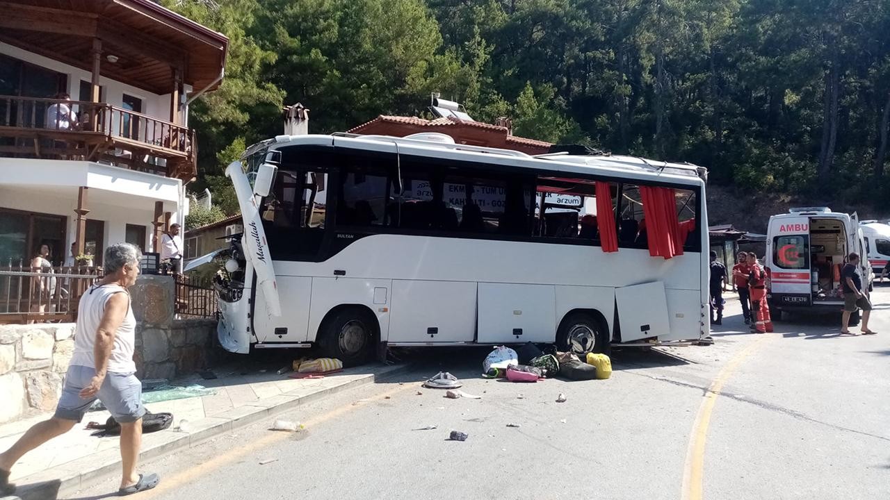 Muğla'da freni tutmayan tur otobüsü park halindeki 3 araca çarptıktan sonra bir evin bahçe duvarına vurarak durabildi. Kazada 1 kişi hayatını kaybetti, 32 kişi yaralandı.