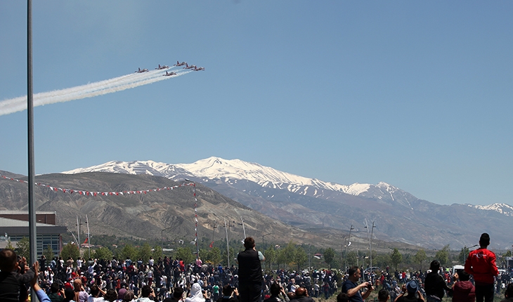 Erzincan Binali Yıldırım Üniversitesi (EBYÜ) bahar şenlikleri kapsamında Türk Hava Kuvvetlerinin akrobasi timi Türk Yıldızları, gösteri uçuşu gerçekleştirdi.