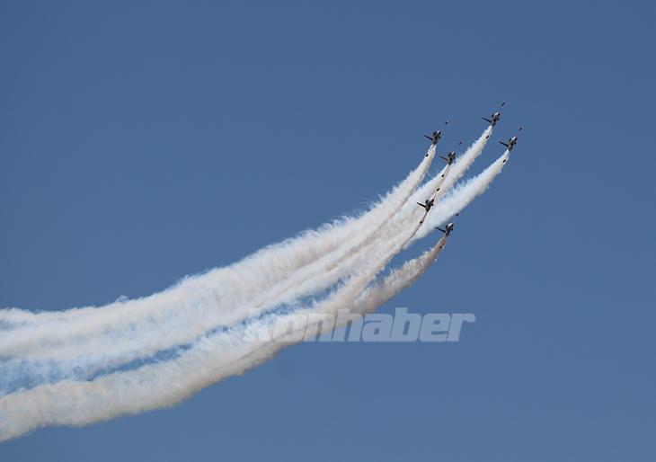 EBYÜ Yalnızbağ Yerleşkesi üzerinde yapılan gösteride, uçaklar gökyüzüne ay yıldız çizerek akrobatik hareketler yaptı.