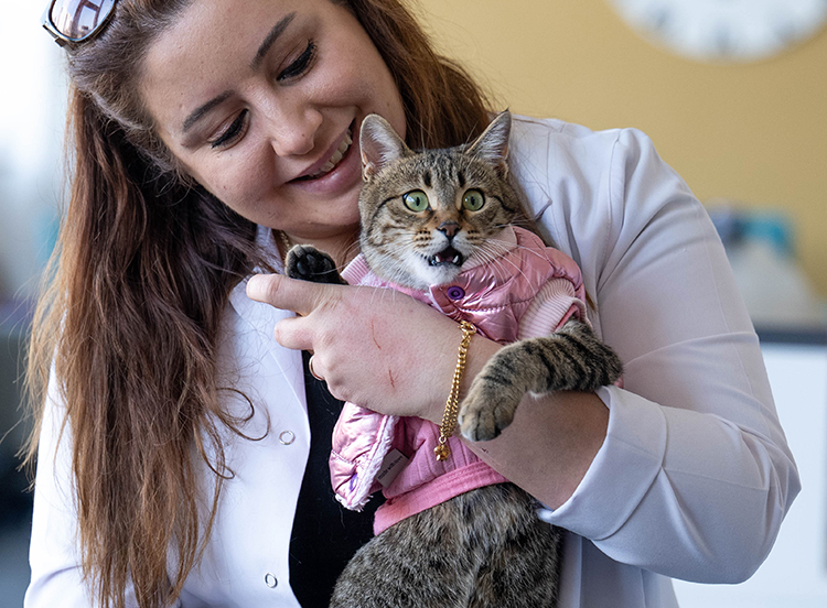 Ankara'da bir veteriner kliniğinde yaşayan üç bacaklı kedi "Tripod" engeline rağmen enerjik yapısıyla esnafın maskotu haline geldi.