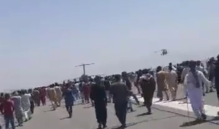 Binlerce Afgan, ülkeyi terk etmek için Hamid Karzai Uluslararası Havalimanı'na akın etti. Gece saatlerinde havalimanı pistinde yoğun kalabalık olduğu görüldü.