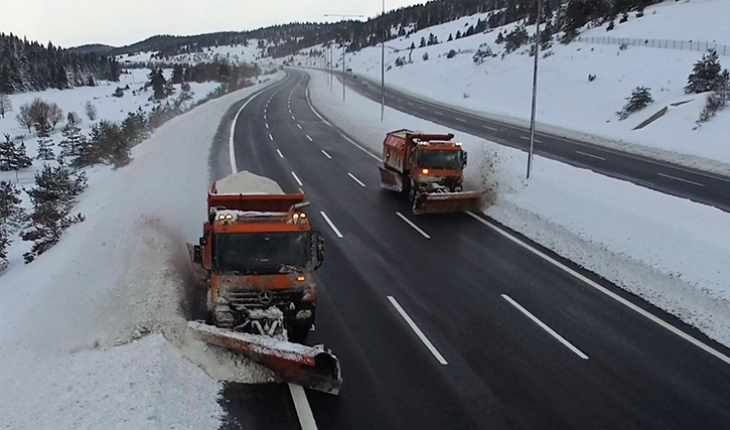 Açıklamada, kış şartlarının yoğun yaşandığı şehirlerde güvenli ve kesintisiz ulaşımı sağlayabilmek için çalışan turuncu ekiplerin, Türkiye'nin dört bir yanında mücadelesini 7 gün 24 saat titizlikle sürdürdüğü belirtilerek, çalışmalarda kullanılmak üzere 540 bin ton tuz, 340 bin metreküp tuz agregası, kritik kesimler için 8 bin ton kimyasal buz çözücü ve tuz çözeltisi ile 700 ton ürenin karla mücadele merkezlerinde depolandığı bildirildi.