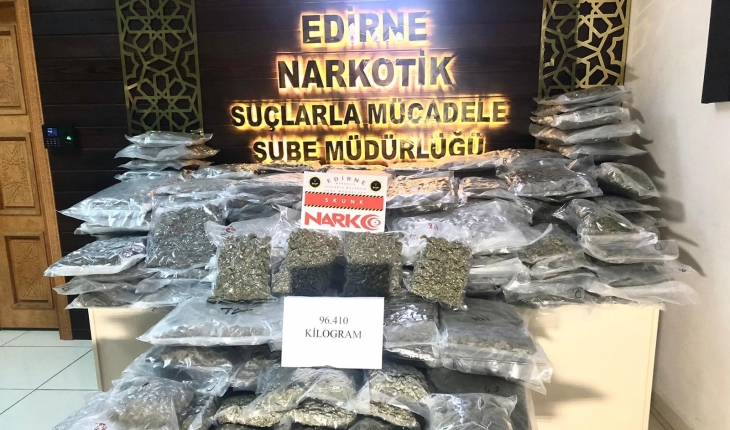 Edirne'de valizler içinde 96 kilo 410 gram skunk maddesi ile yurda giriş yapan 2 tır sürücüsü, Kapıkule Sınır Kapısı'ndan valizleri çöpe atarken suçüstü yakalandı.