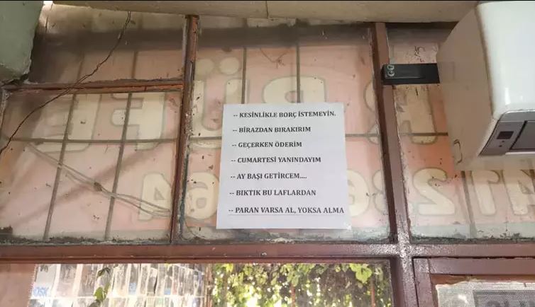 15 yıldır insanlarla uğraşıyoruz büfede. Adam geliyor, şurada 1 bardak çay içiyor, ‘Ağabey birazdan bırakırım’ diyor. Burada aylarca samimiyet kuruyor, 1 sene boyunca her hafta düzenli olarak ödeme yapıyor, yapıyor. Ondan sonra birkaç hafta borç yazdırıp ya sokağı terk ediyor ya işi bırakıyor. Aylarca WhatsApp'tan yazıyorsun dönüş yapmıyor, aylarca telefonu reddediyor, cevap vermiyor. Ama burada kendi oturduğunda, birisi ödeme yapmadığında kendisine, küfür üzerine küfrediyor. Kendine gelince yok bir şey. Adama diyorsun, ‘Borç sigara isteme’, adam geliyor ‘Ağabey bu bana geçerli mi’, kime geçerli olacak başka. Yabancılar gelip istemez bunu. Bunun gibi işte, yıllardır yazıyorsun hep ama insanlar hep uğraştırıyor işte. Biri gidiyor, biri geliyor” diye konuştu.