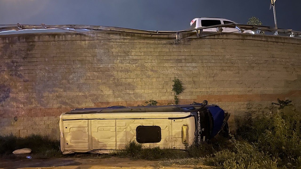 Ümraniye'de virajı alamayan minibüsün bariyeri aşarak 5 metre yükseklikten düşmesi sonucu 1'i ağır 2 kişi yaralandı.