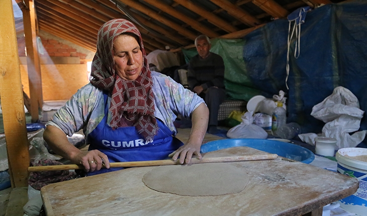 Konya'nın Orta Toroslardaki Hadim ilçesinde yaşayan 58 yaşındaki Meryem Sevinç, yaban armutlarını kurutarak elde ettiği unla yufka ekmek yapıyor.