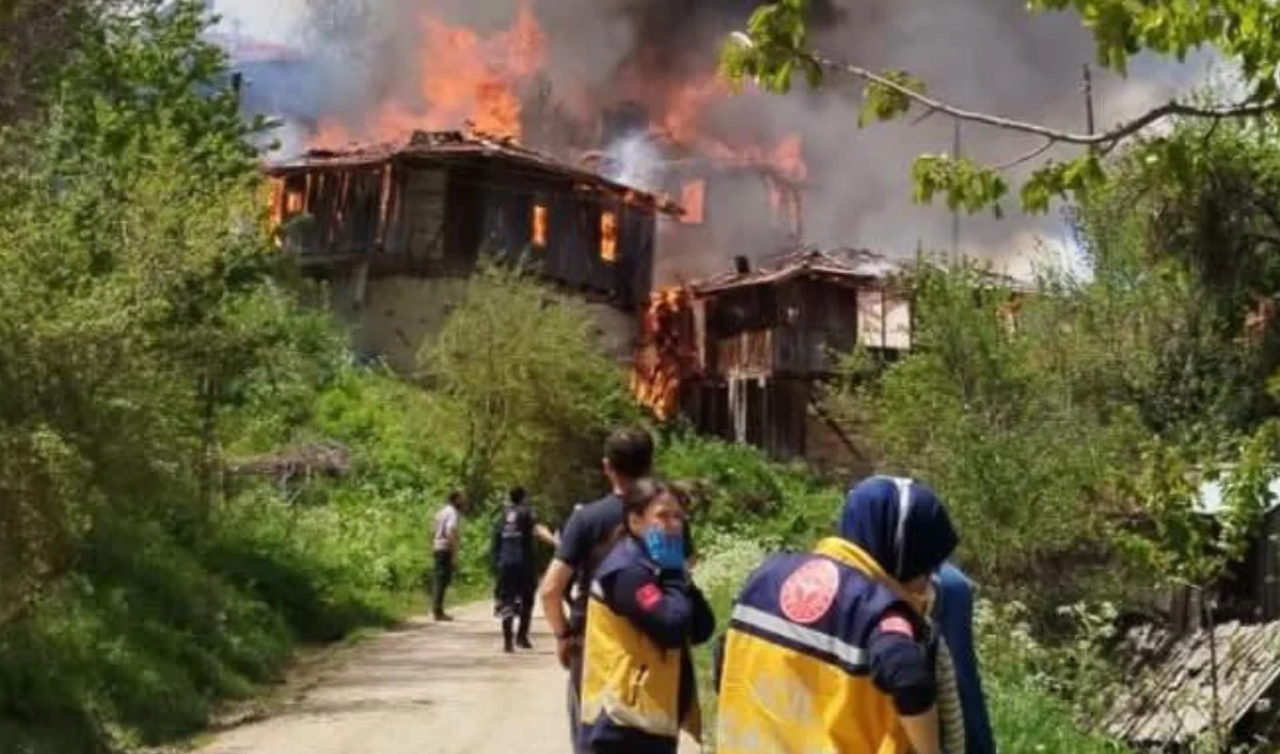 Bolu'nun Göynük ilçesine bağlı Bekirfakılar Köyü'nde metruk alanda başlayan yangın kısa sürede büyüdü. Alevler, bitişik durumdaki 2 ahşap evi ve köy camisinin tamamını sardı.