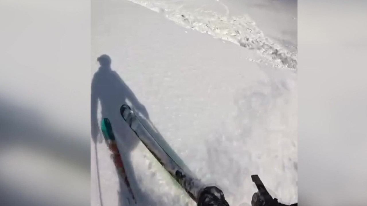Görüntülerde, İranlı kayakçının önünde 3 kişiyle dağdan indiği görülüyor. Slalom yaparak ve şarkı söyleyerek yasaklı bölgeden inen kayakçının, yukarıdakilerin seslenmelerini takiben hemen arkasından gelen çığla bir süre sürüklendiği görülüyor.