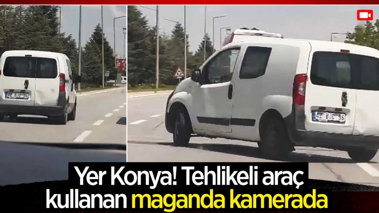 Konya’nın Selçuklu ilçesinde seyir halinde olan bir trafik magandası tehlikeli araç kullanırken görüntülendi.