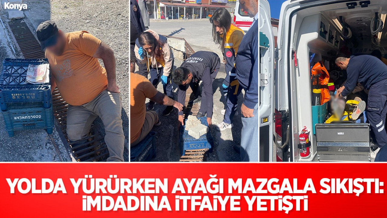 Konya'nın Kulu ilçesinde bacağı demir mazgala sıkışan vatandaş itfaiye ekiplerinin çalışmasıyla kurtarıldı.