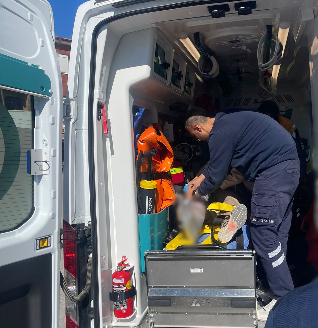 Olay yerinde hazır bekletilen 112 ambulans ekibine teslim edilen K. yapılan ilk müdahalenin ardından, Kulu Bölge Devlet Hastanesine kaldırıldı. (Büşra Üstündağ)