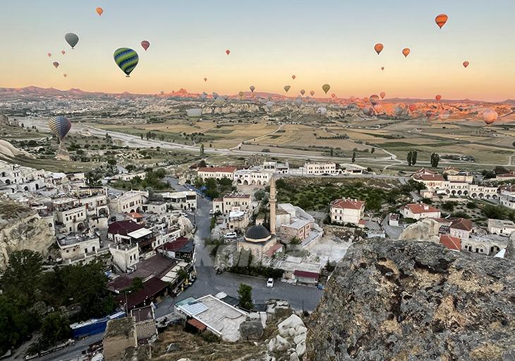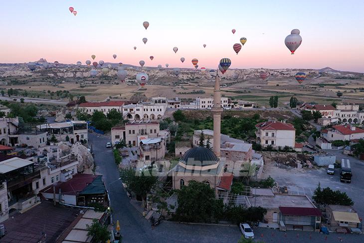Yeni tip koronavirüs (Kovid-19) salgınıyla mücadelenin başladığı 2020 yılı boyunca, Kapadokya'da sıcak hava balon turuna 120 bin 917 kişi katılırken, bu rakam geçen yılın ilk 6 aylık diliminde 90 bin 493 olarak gerçekleşmişti. Bu yıl turizmde hareketliliğin yaşandığı bölgede sıcak hava balon turuna ilgi de arttı.Göreme beldesi ve çevresindeki çeşitli alanlardan gün doğumunda gökyüzüne yükselen sıcak hava balonları, yaklaşık 45 dakika boyunca peribacalarıyla kaplı vadiler üzerinde süzülüyor.