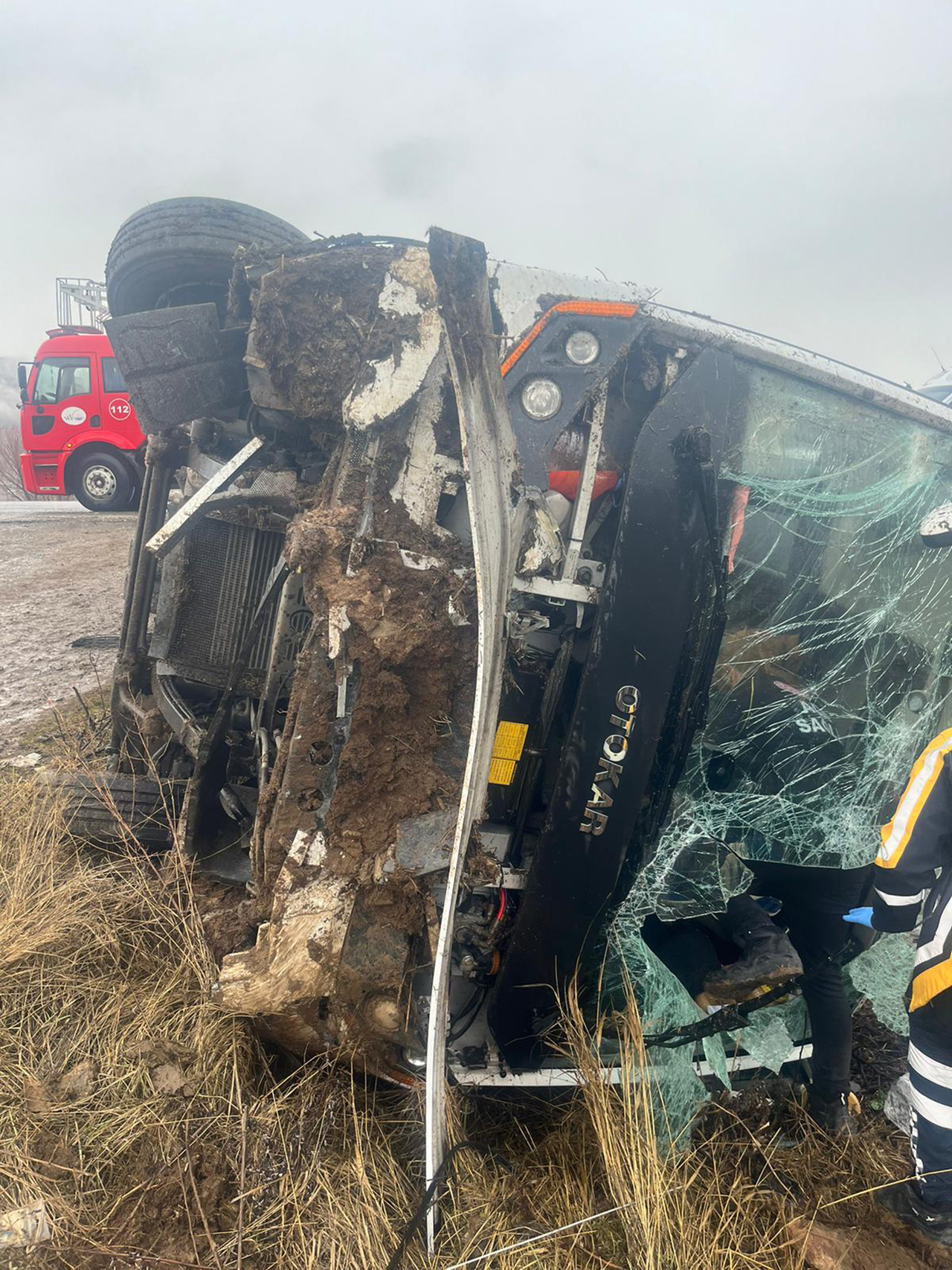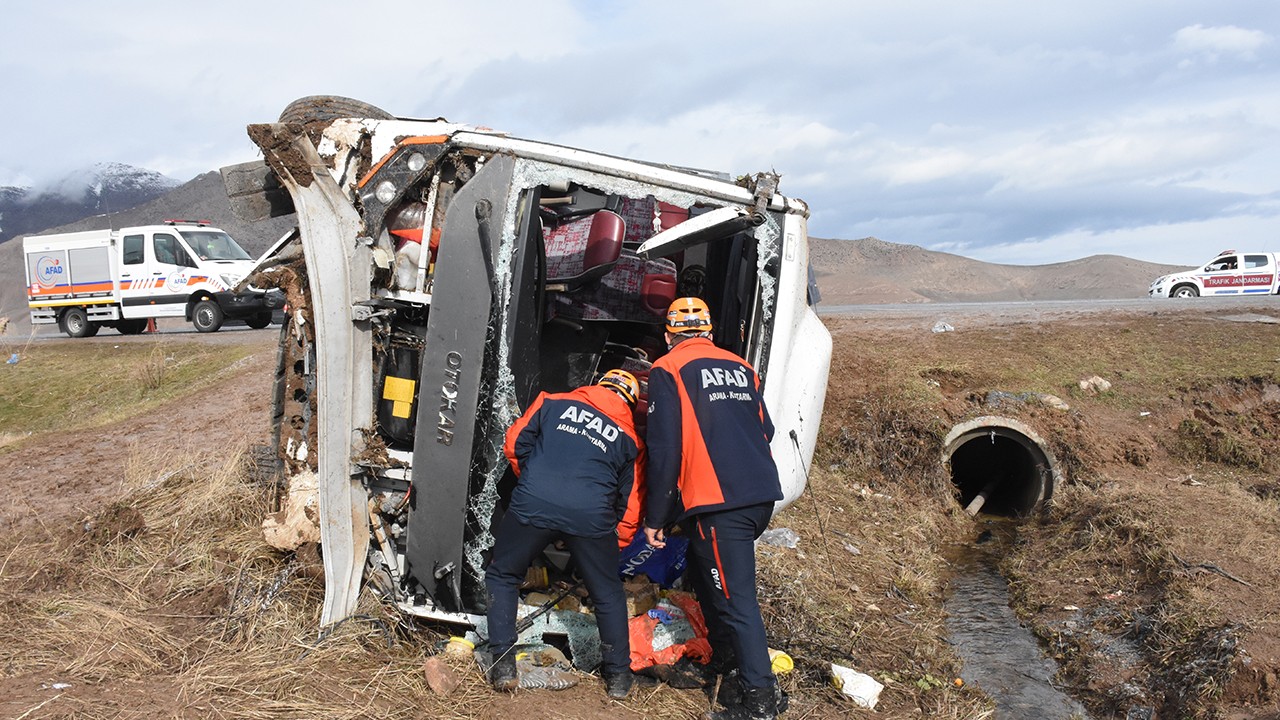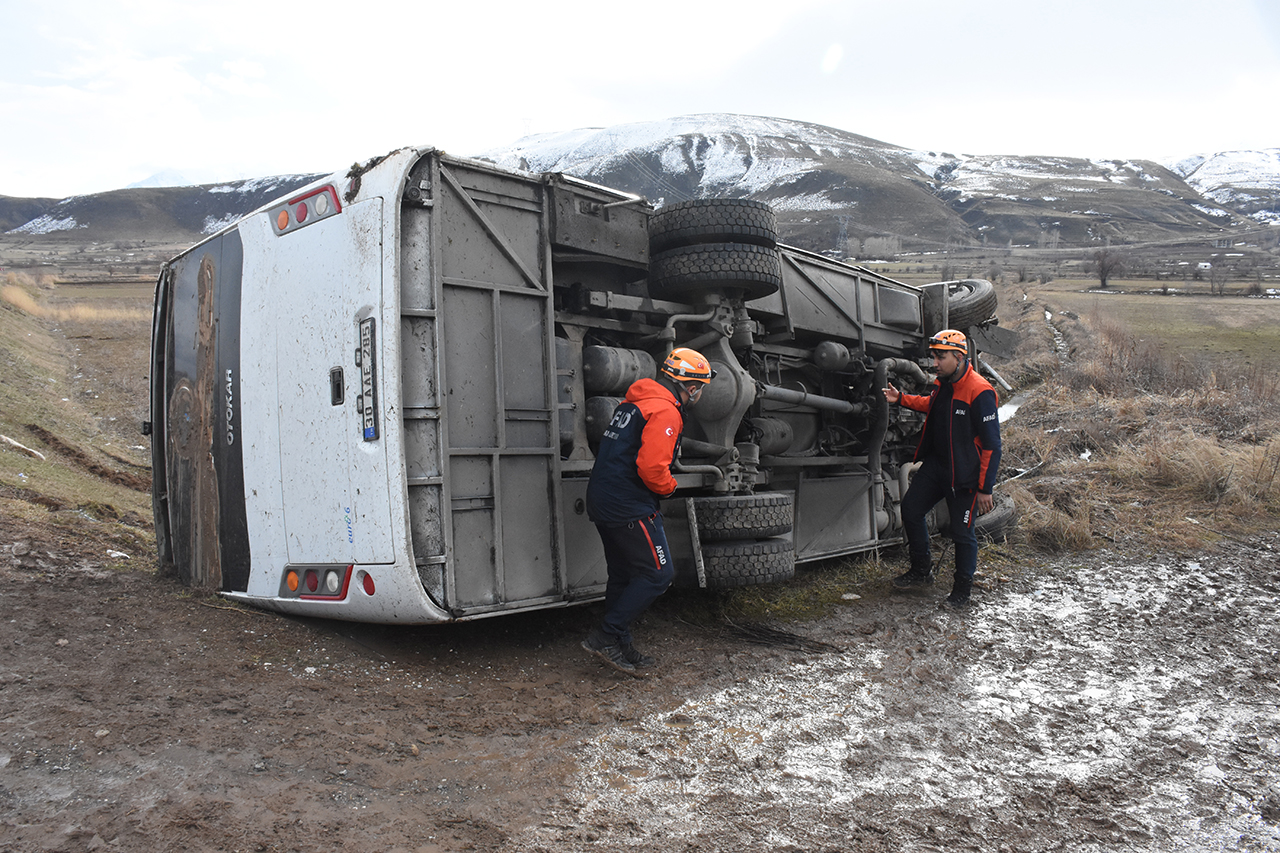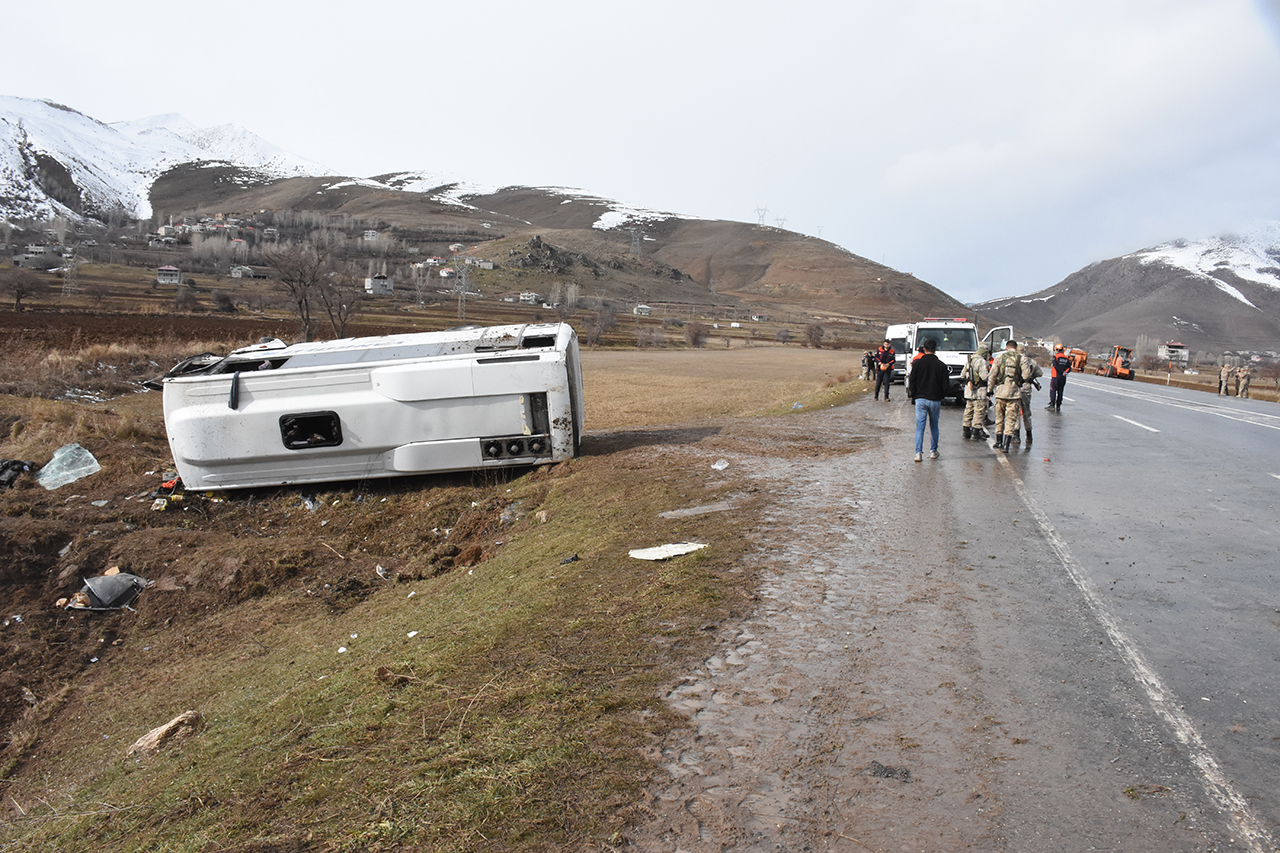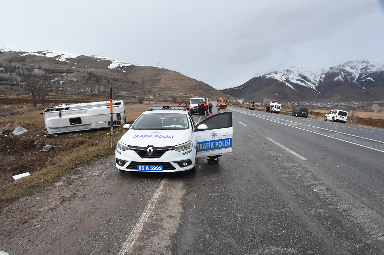 Van-Bitlis kara yolu Yuva Mahallesi mevkisinde 30 AAE 285 plakalı yolcu midibüsü devrildi.