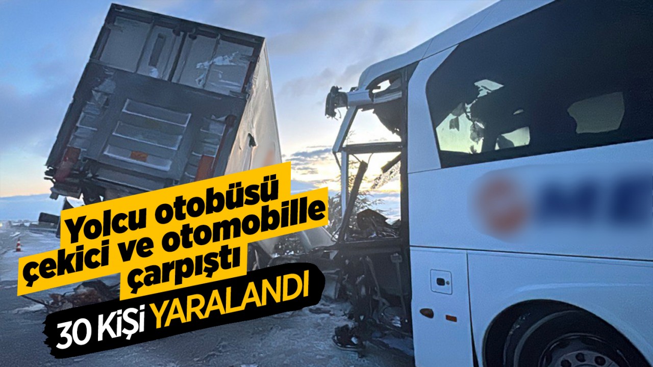 Afyonkarahisar'ın Emirdağ ilçesinde biri yolcu otobüsü 3 aracın karıştığı trafik kazasında 30 kişi yaralandı.