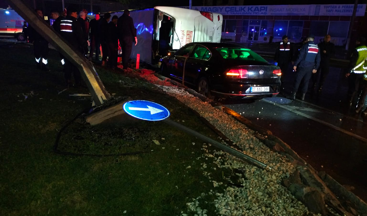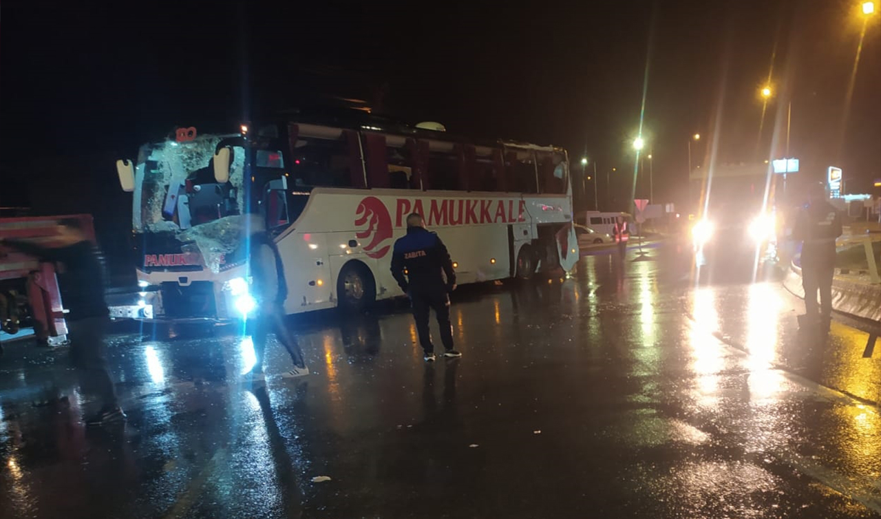 Araca arkasından gelen otomobilin de çarptığı kazada, otobüsteki bir yolcu hayatını kaybetti, 20 kişi yaralandı.