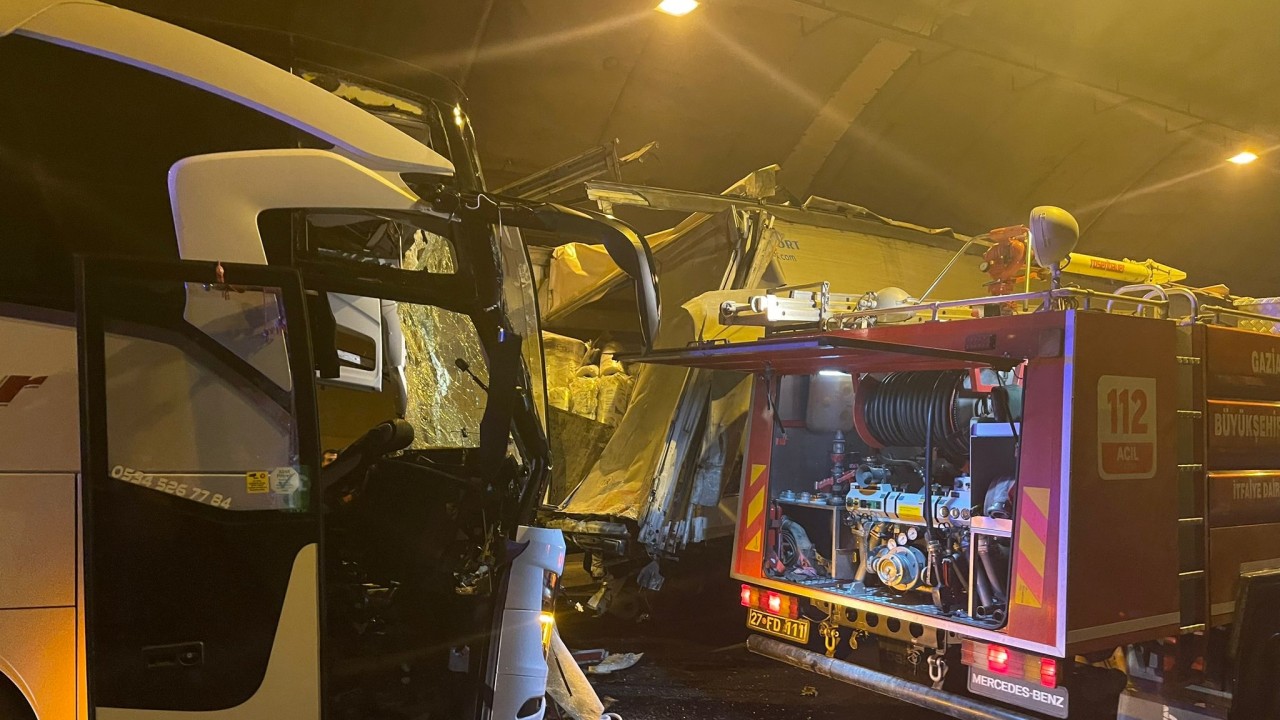 Sürücüsü öğrenilemeyen Can Dersim Tuncelililer firmasına ait 62 AF 666 plakalı yolcu otobüsü, Tarsus-Adana-Gaziantep otoyolu Bahçe ilçesi yakınlarındaki Kızlaç Tüneli'nde 33 DIN 90 plakalı tıra arkadan çarptı.