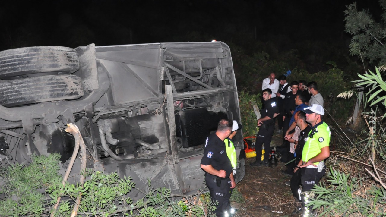İzmir- Mersin seferini yapmakta olan yolcu otobüsü, yol yapım çalışmasının sürdüğü çevreyolu üzerinde sürücü direksiyon hakimiyetini yitirdi, otobüs yol kenarındaki üzüm bağına uçtu.