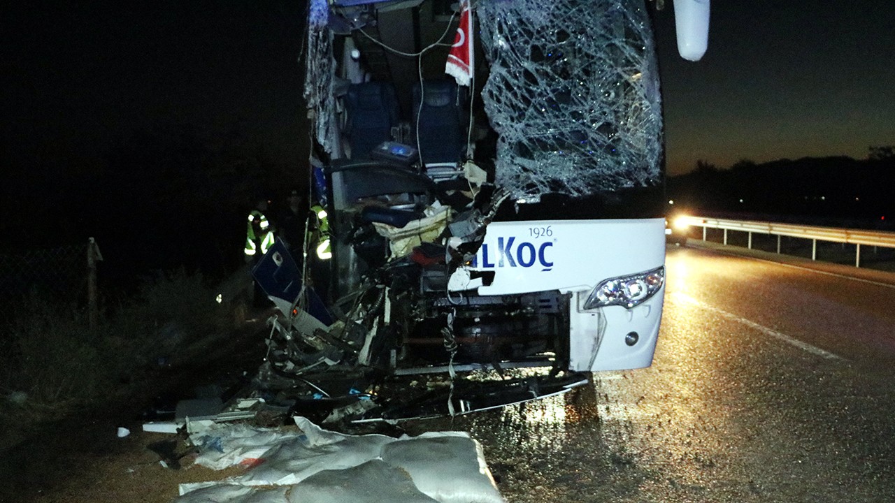 Afyonkarahisar'ın Sandıklı ilçesi yakınlarında yolcu otobüsünün yem yüklü kamyona arkadan çarptığı kazada muavin Necmettin K. hayatını kaybetti, 36 kişi yaralandı.