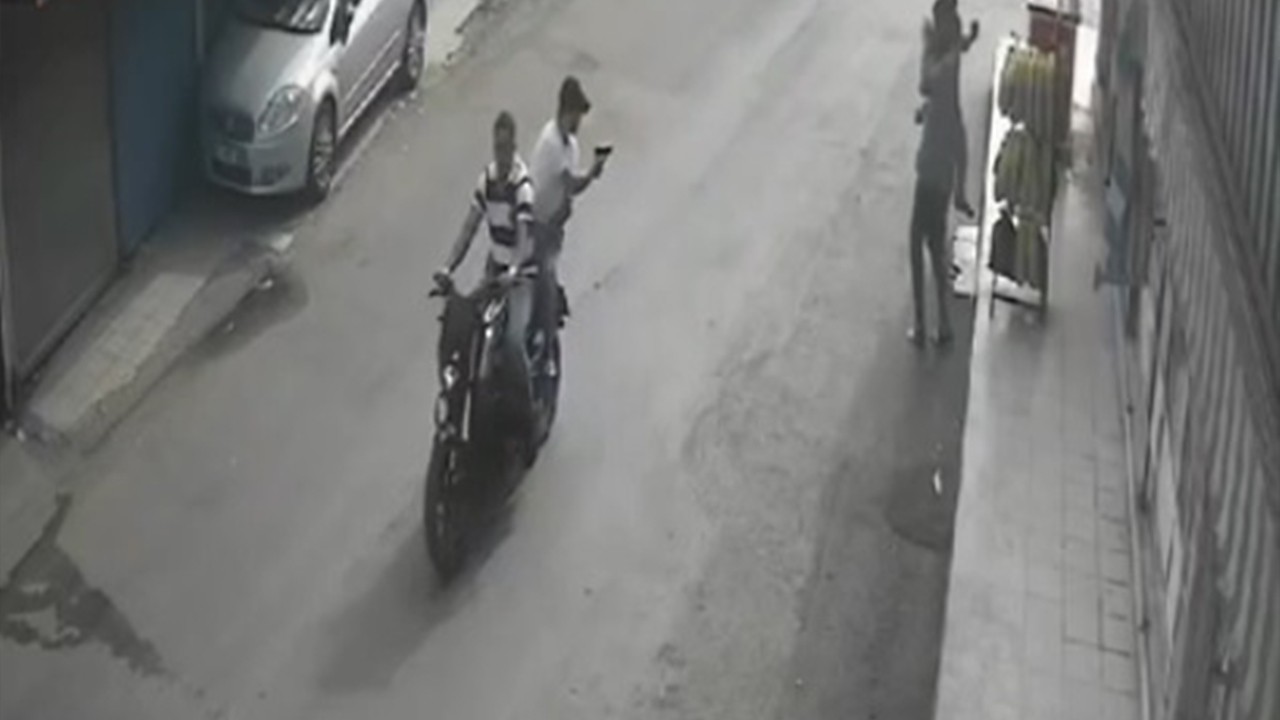 Adana'da yolda yürüyen 2 kişi, motosikletteki 2 şüphelinin tabancalı saldırısına uğradı. Kimsenin yaralanmadığı olay, güvenlik kamerasına yansıdı.