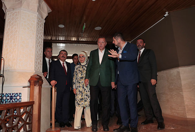 Cumhurbaşkanı Erdoğan Mevlana Meydanı'ndaki Toplu Açılış Töreni'ndeki konuşmasından sonra eşi Emine Erdoğan ile birlikte Konyanüma Panaroma'yı gezerek yetkililerden bilgi aldı.