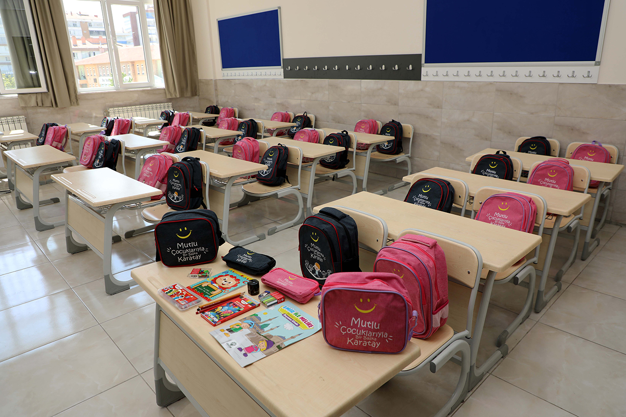 Bu kapsamda ilkokul 1’inci sınıfa başlayacak her öğrenci için okul çantasının yanı sıra kalem seti, kalemlik, silgi, kalemtıraş, beslenme çantası, kuru ve pastel boya setleri, güzel yazı defteri, boyama kitabı ile sayı çubukları ve fasulyelerden oluşan kırtasiye seti hazırlandı. Çantalar ve kırtasiye setleri, öğrencilerin sıralarındaki yerini almaya başladı.