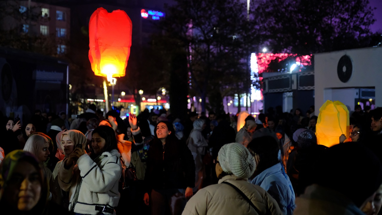 Kutlamaların merkezlerinden biri olan Konya Şehir Meydanı ve Kılıçarslan Şehir Meydanı’nda yoğun kalabalık oluştu. Çocuklarıyla birlikte meydanlara gelen binlerce vatandaş, ellerindeki fenerleri gökyüzüne bırakarak geceye görsel bir şölen kattı.